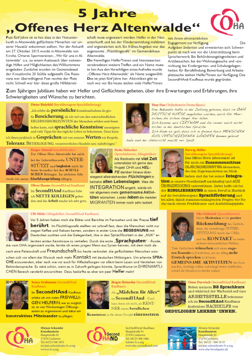 Heute möchten wir einen Rückblich auf 5 Jahre „Offenes Herz Altenwalde“ werfen. Ein wunderbares und wichtiges Projekt in unserer Stadt, das unter anderem aus Mitteln des Bundesprogramms „Demokratie...